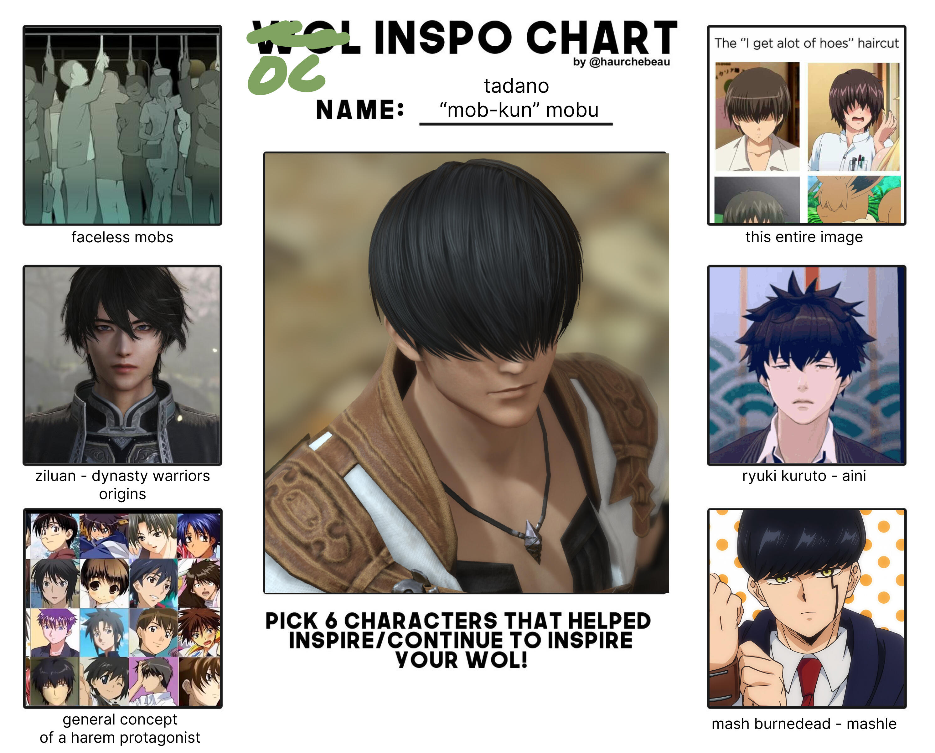 - Somewhat dense & awkward, self-concious, impulsive, stubborn, quite pathetic at times, pushover, pornbrained, simplemindedOrigins: Got isekai'd from Tokyo, Japan into the world of FFXIVFamily: Parents back in Japan, is an only childLikes: fishing, triple triad, lazing around on his island, guns / gun related weapons, loporrits & namazu, trying out new foods and cooking, moogleritaville, gambling, nightly atmosphere, Kugane Culture Books (aka porn mags)Dislikes: melee combat, morbols, bitter and spicy foods, lack of cup noodles, bugs, heavy or complicated armor, smithing, cold weather, himself (won't admit or recognize it)